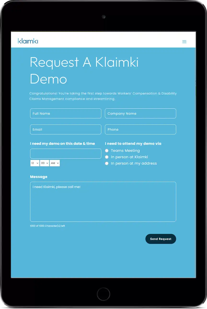 Klaimki Request A Demo Mobile