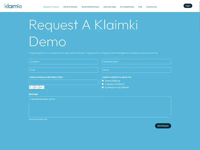 Klaimki Request Demo Page
